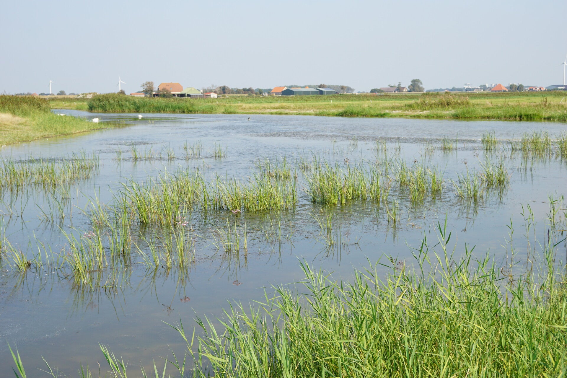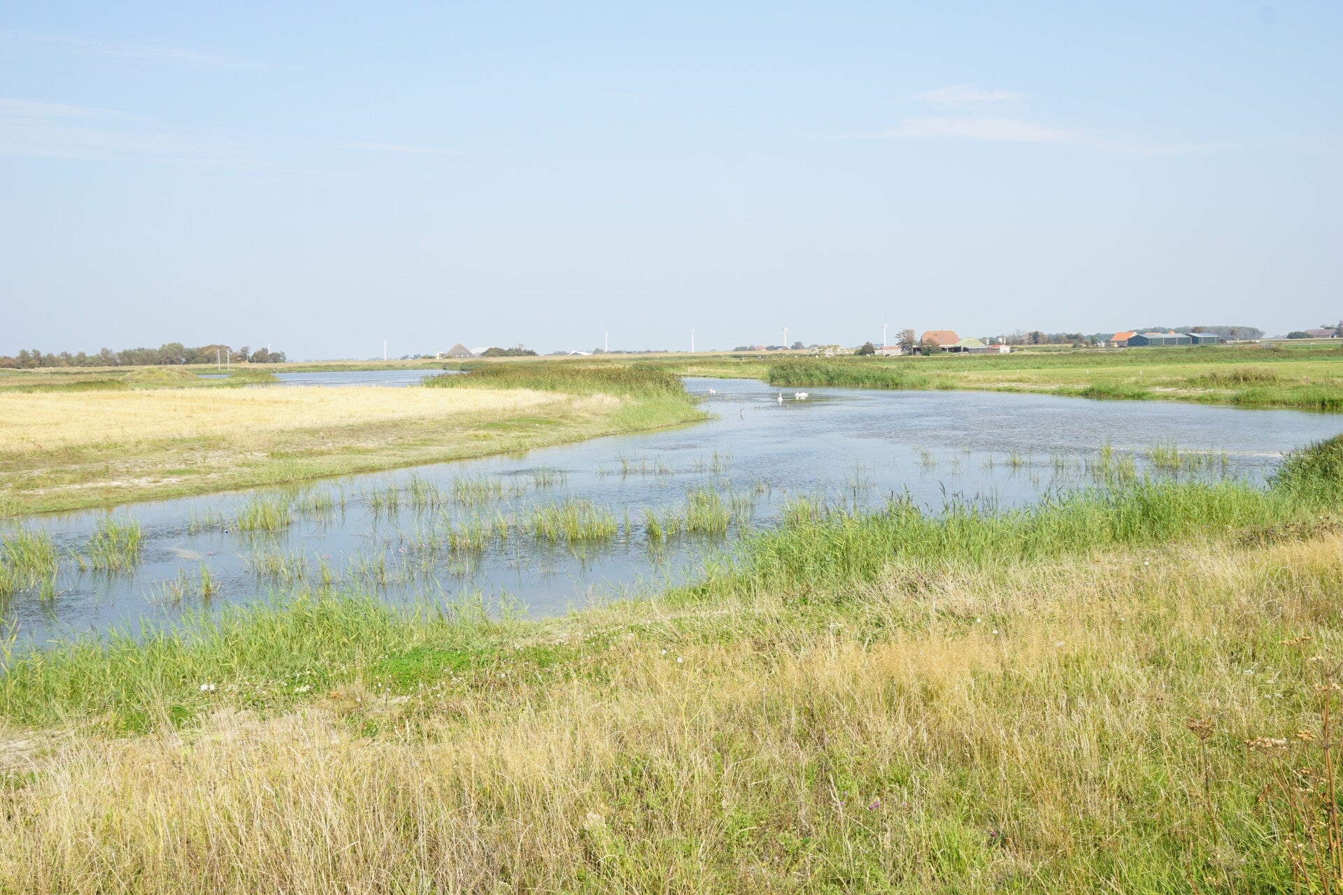 Door het boerenland koersen we op Abbestede aan. Het gehucht is omgeven door nollen, akkers en bollenvelden, die drie maanden per jaar onder water worden gezet om onkruid te bestrijden. Hierna slingeren we naar het noorden en bereiken over de verruigde Helmdijk de buurtschap Groote Keeten.