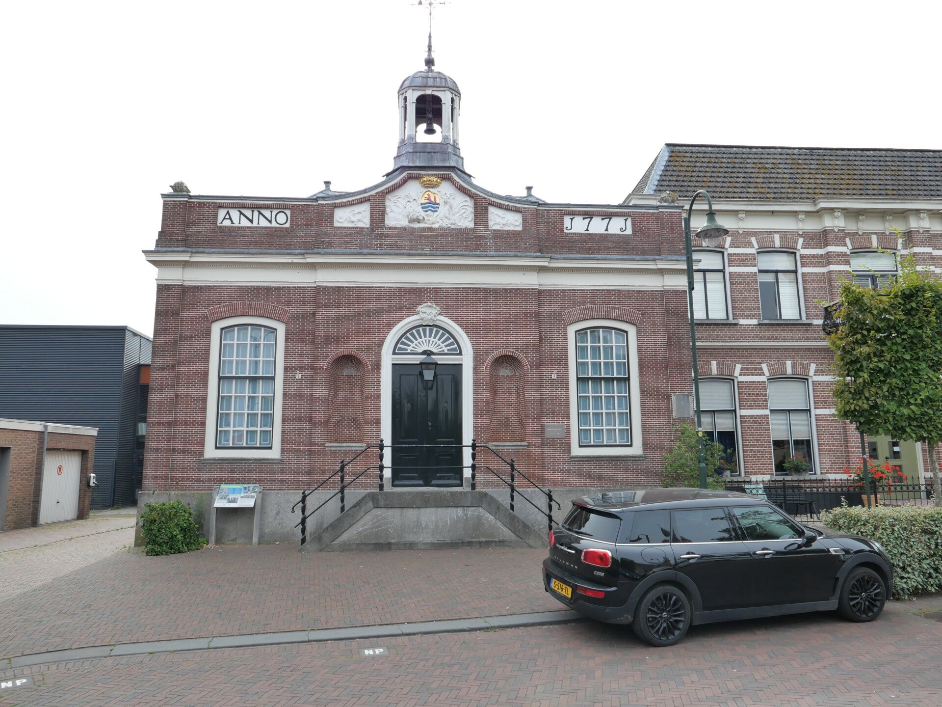 Na de kruising met de Schoolstraat RA, Schermerspad. Voor de kerk LA en met de rechterbocht meegaan. Je komt langs een monument over de meekrapteelt.