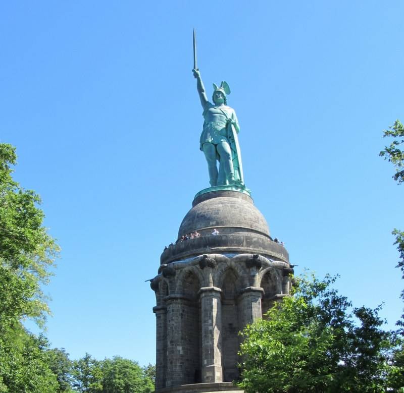 Nu komt de eindbestemming van deze etappe in zicht: het Hermannsmonument. Dit kolossale beeld verwijst naar de slag bij het Teutoburgerwoud en het verhaal van Hermann (Arminius). Arminius, als leider van de Germanen, wist de troepen van de Romeinse stadhouder Varus in een hinderlaag te lokken en zo de overwinning te behalen. Aanvankelijk was deze slag in vergetelheid geraakt, maar toen men in de 19e eeuw met de "bevrijdingsoorlogen" tegen Napoleon in het geheugen op zoek ging naar nationale verhalen en helden, besloot men een standbeeld voor Arminius op te richten.