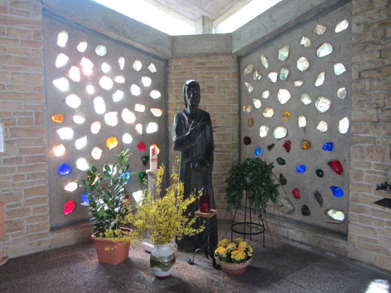 Voorbij de Dörenther Klippen lopen we langs de rand van het bos en komen na nog een kapelletje langs boomgaarden met oude appelboomrassen. Alles staat in volle bloei.