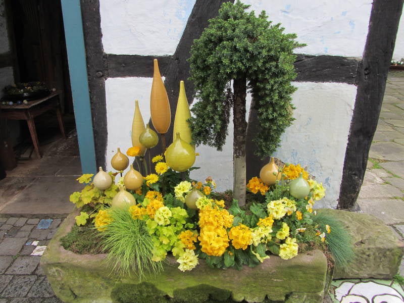 Langs een natuurstenen muur naderen we Tecklenburg. Na de Bismarckturm wacht ons een bloemrijke ontvangst!