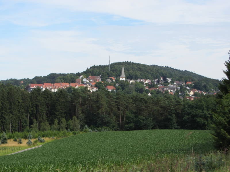 Onze etappe eindigt in het gezellige stadje Oerlinghausen. De toren van de Alexanderkirche is al van veraf te zien.
