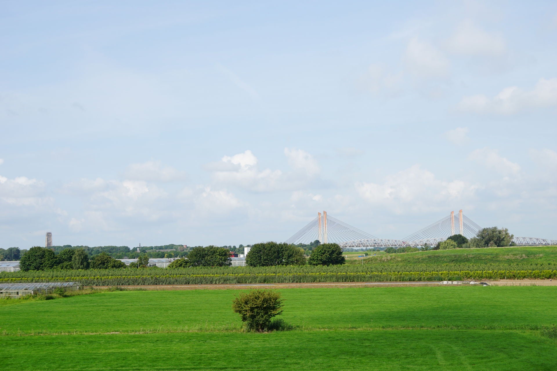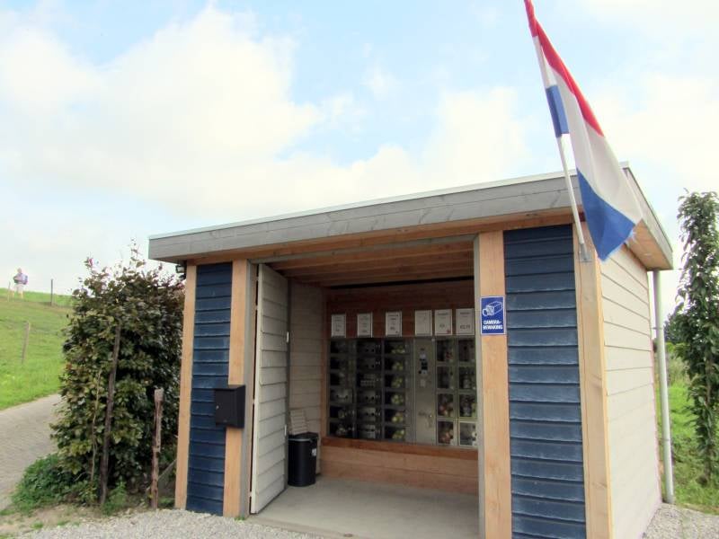 Bij de dijk kom je het wit-rode routeteken weer tegen. Maar eerst nog even een appeltje voor de dorst trekken uit de fruitautomaat en afscheid nemen van de Martinus Nijhoffbrug!
