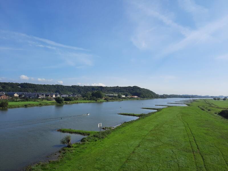 Vanaf station Rhenen wandelen we over de brug de Betuwe in. Rechts ligt Rhenen met de markante Cuneratoren. Links de Grebbeberg. Na het mislukken van de Operatie Market Garden barstte hier een felle strijd los waarbij de Duitsers probeerden de geallieerden te verdrijven.