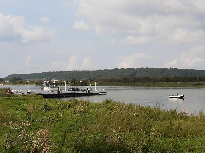 Na het veerhuis en de pont naar de Blaauwe Kamer volgt een struinpad door de Maneswaard. Dat levert weer mooie vergezichten op. Tussen de waterplassen door gaat het op Opheusden aan. We voelen ons welkom hier. Iedereen zegt je gedag.