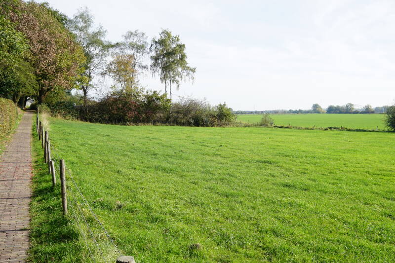Door de velden lopen we naar de Rijn. In dit gebied werden op 21 september 1944 ongeveer 1000 parachutisten gedropt en begonnen de eerste schermutselingen met de Duitsers. Hiervandaan probeerden amfibievoertuigen met bevoorrading voor de Britse soldaten bij Oosterbeek de Rijn over te steken. Al voordat ze de Rijn bereikten bleven ze steken in de modder. Ter hoogte van het Engineer Monument op de dijk probeerden de Poolse troepen de Britten te bereiken om hen te evacueren. Om te voorkomen dat de Duitsers gebruik zouden maken van het Drielse Veer had de veerbaas de pont onklaar gemaakt. Hierdoor werd deze ook onbruikbaar voor de Polen en moesten ze met bootjes naar de overkant om de uitgeputte Britse militairen op te halen.