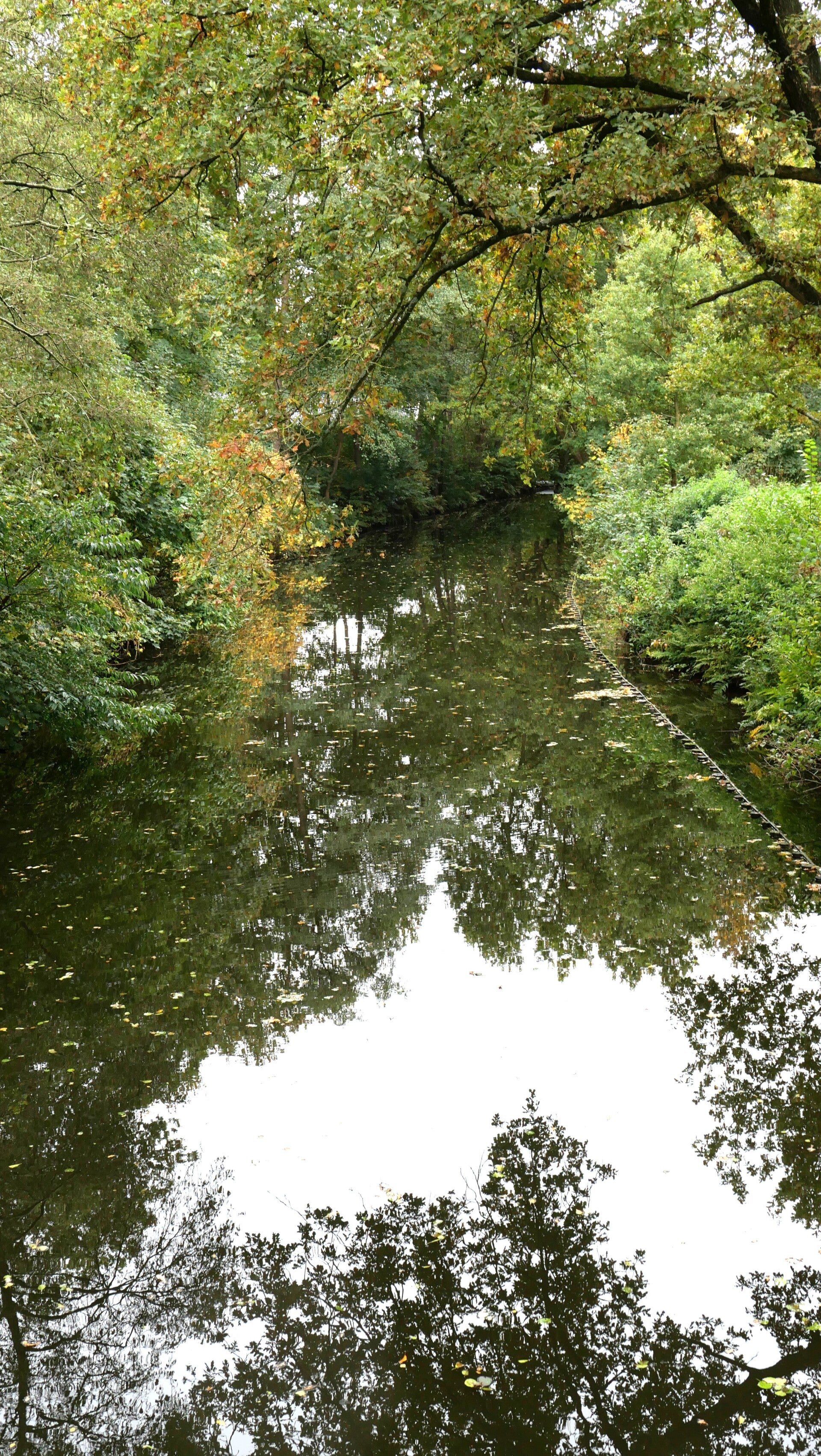 Halverwege de ronding, ter hoogte van de achterkant van de klokkenstoel, RA de bosrand in. Volg dit slingerende pad door het rabattenbos steeds RD en negeer de zijpaden. Je komt weer uit bij de Luts. Ga LA over het zandpad. Blijf langs het water lopen tot landhuis Kippenburg.
