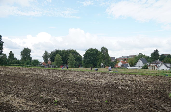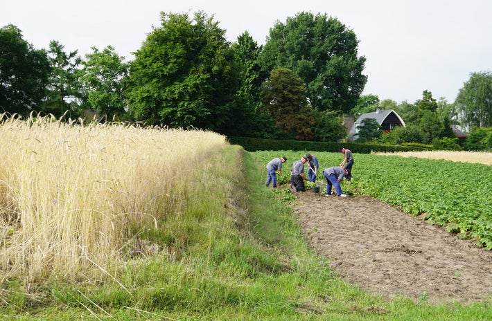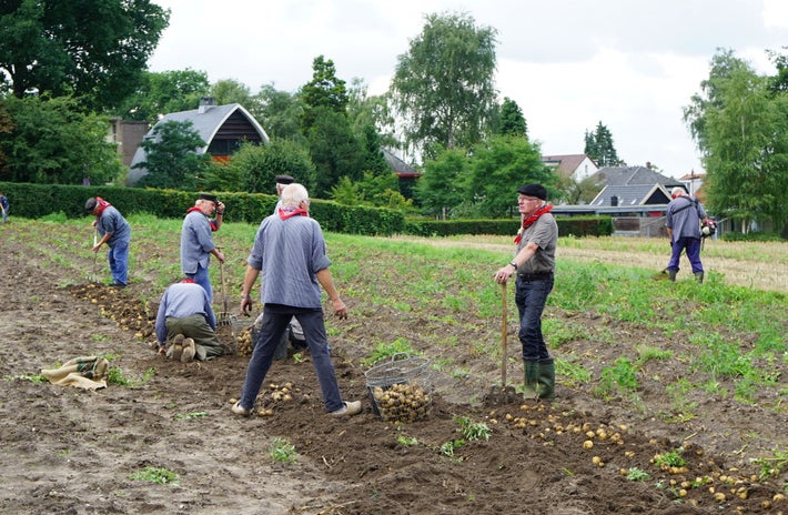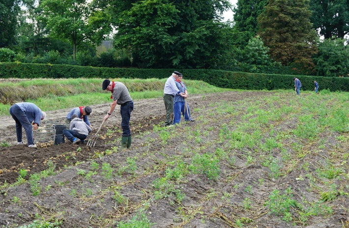 Aardappels rooien op de trapakkers