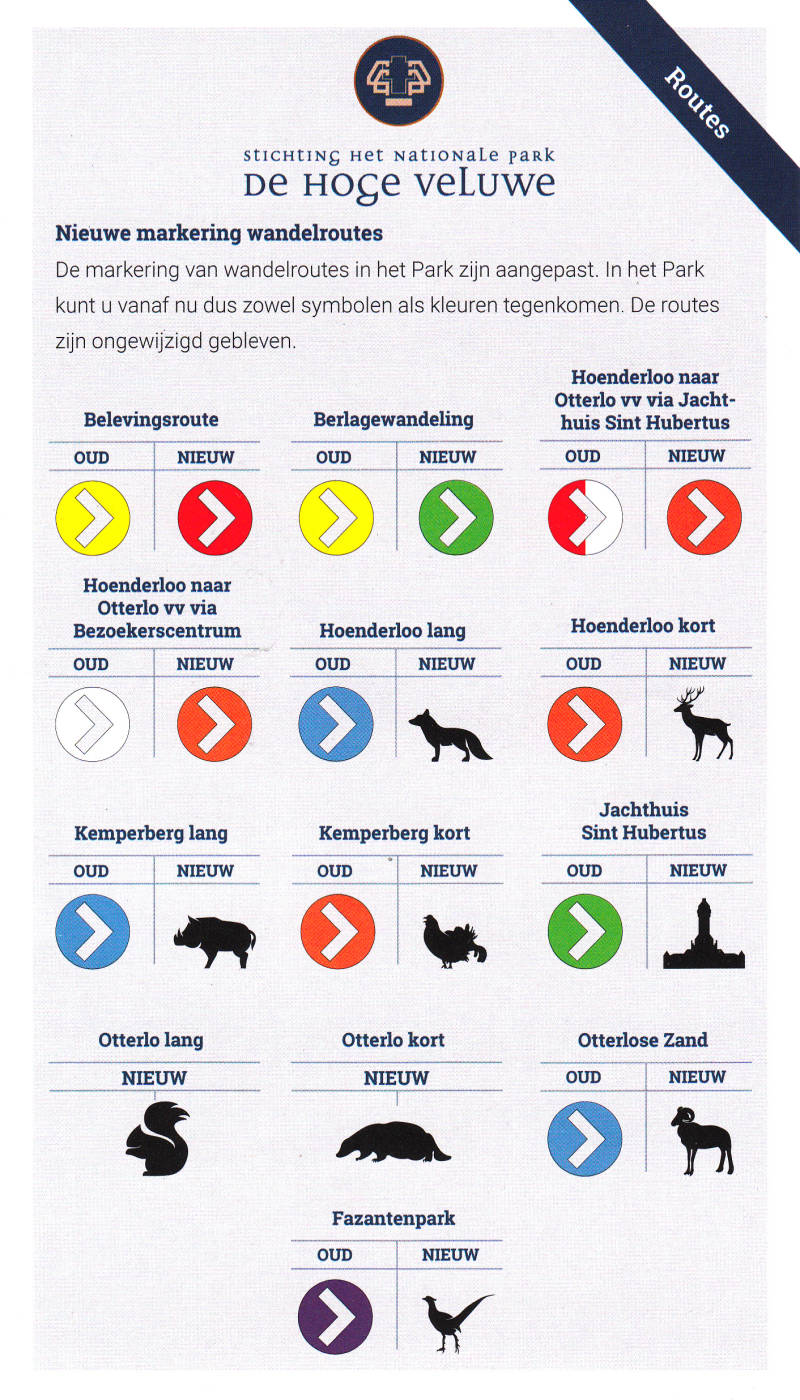 Overzicht nieuwe markering wandelroutes De Hoge Veluwe