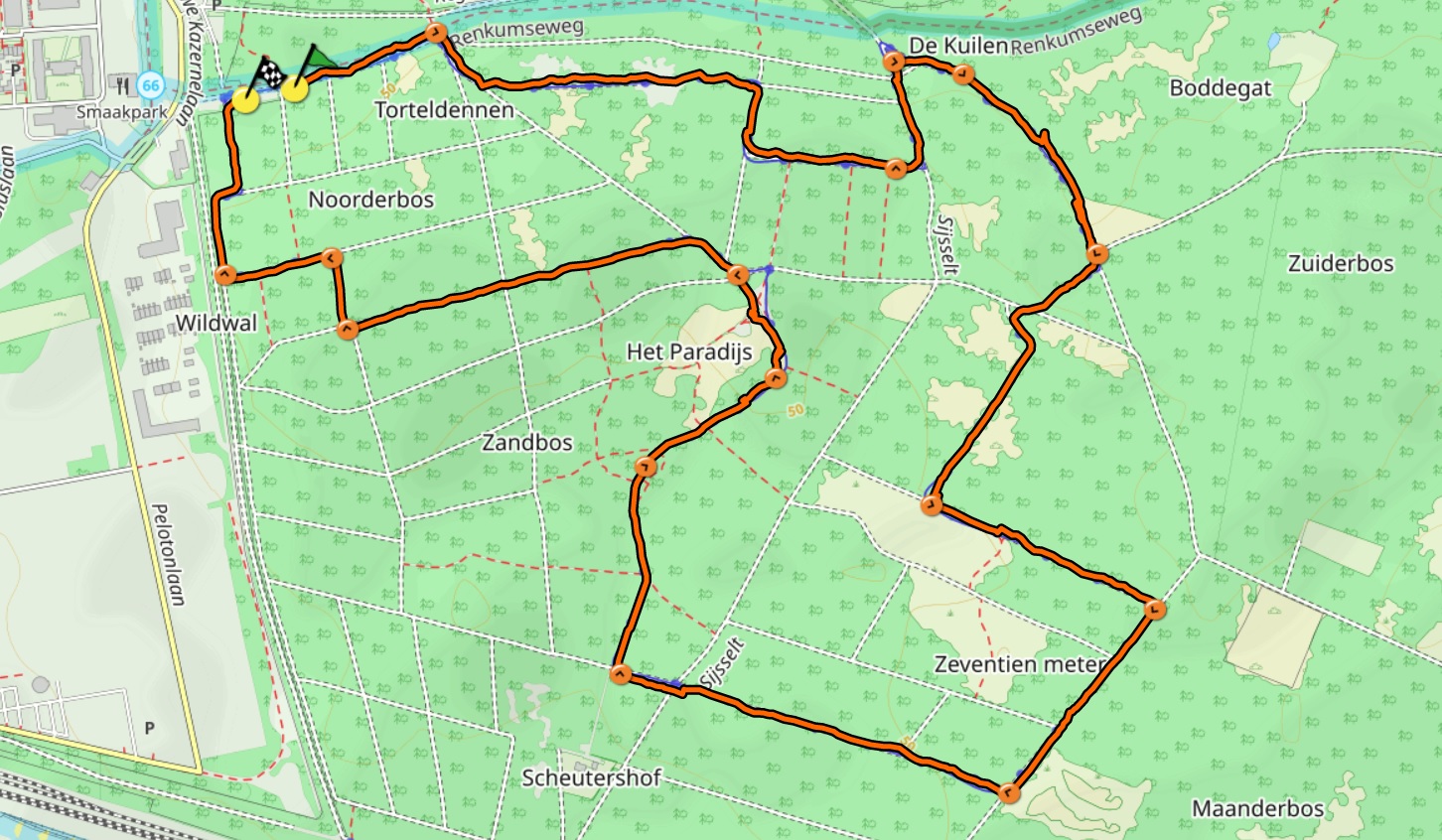 Rode paaltjes route in de Sysselt Sys 2