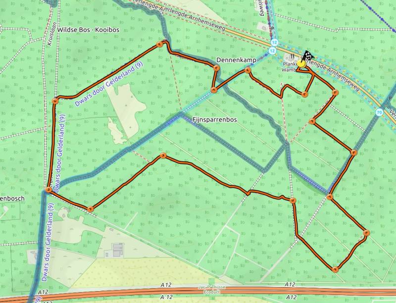 Buunderkamp 5 km. De route is goed aangegeven. Loop door dit mooie stukje Planken Wambuis dat, vooral na regenval, op bepaalde plekken erg drassig kan zijn.