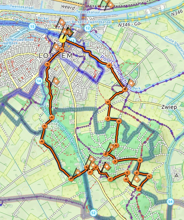 Heel bijzonder is de vrij diepe zandkuil die je onderweg passeert. Het is de "Witte Wievenkuil". Volgens een legende streden in deze kuil een arme boerenzoon en een rijke jongeling met de Witte Wieven om te mogen trouwen met een rijke boerendochter. De route gaat verder langs het Hotel De Lochemse Berg en aan eind passeer je nog een watertoren.