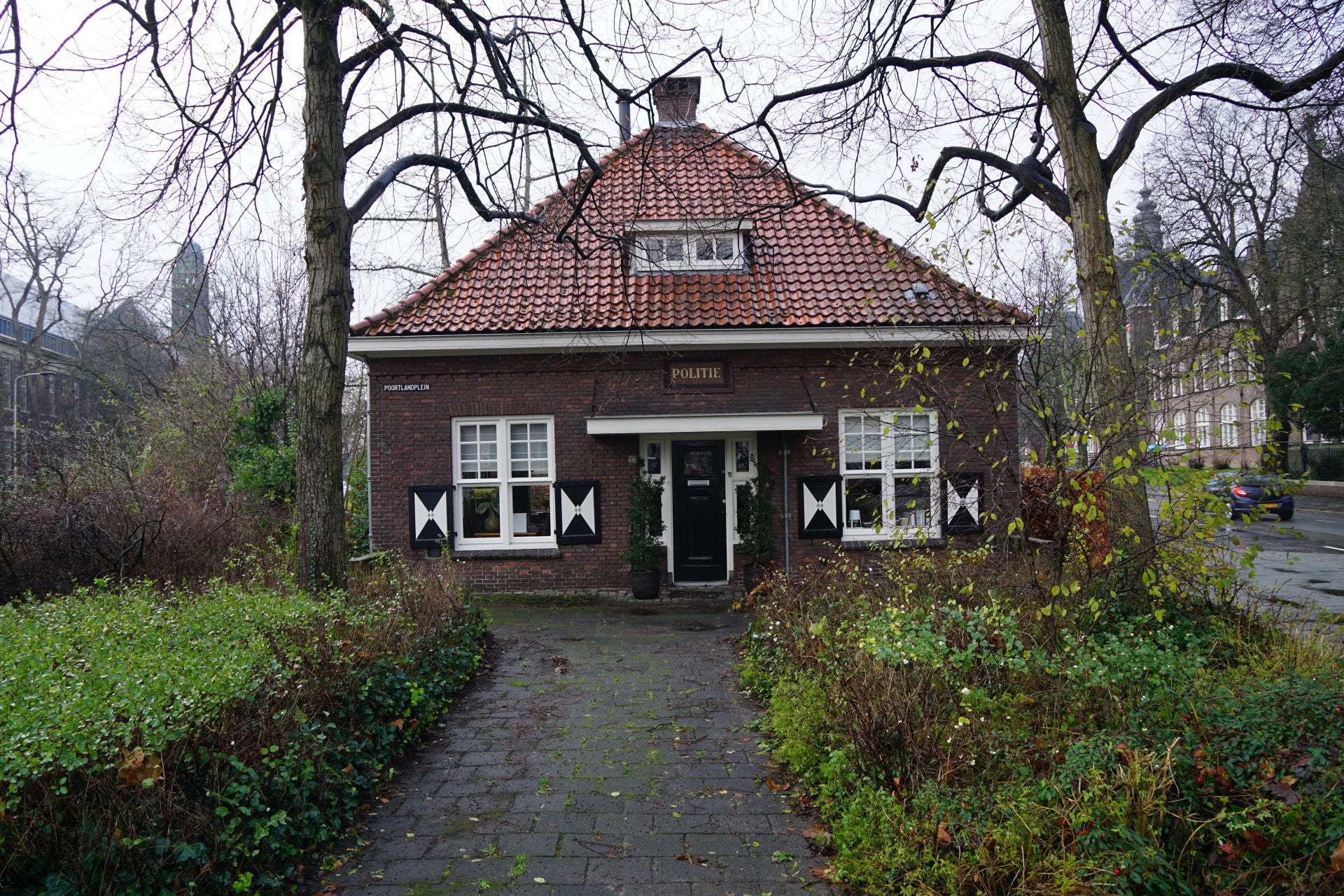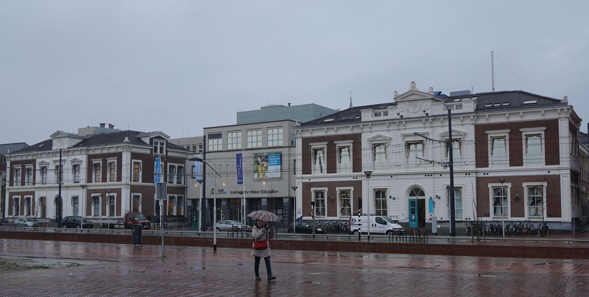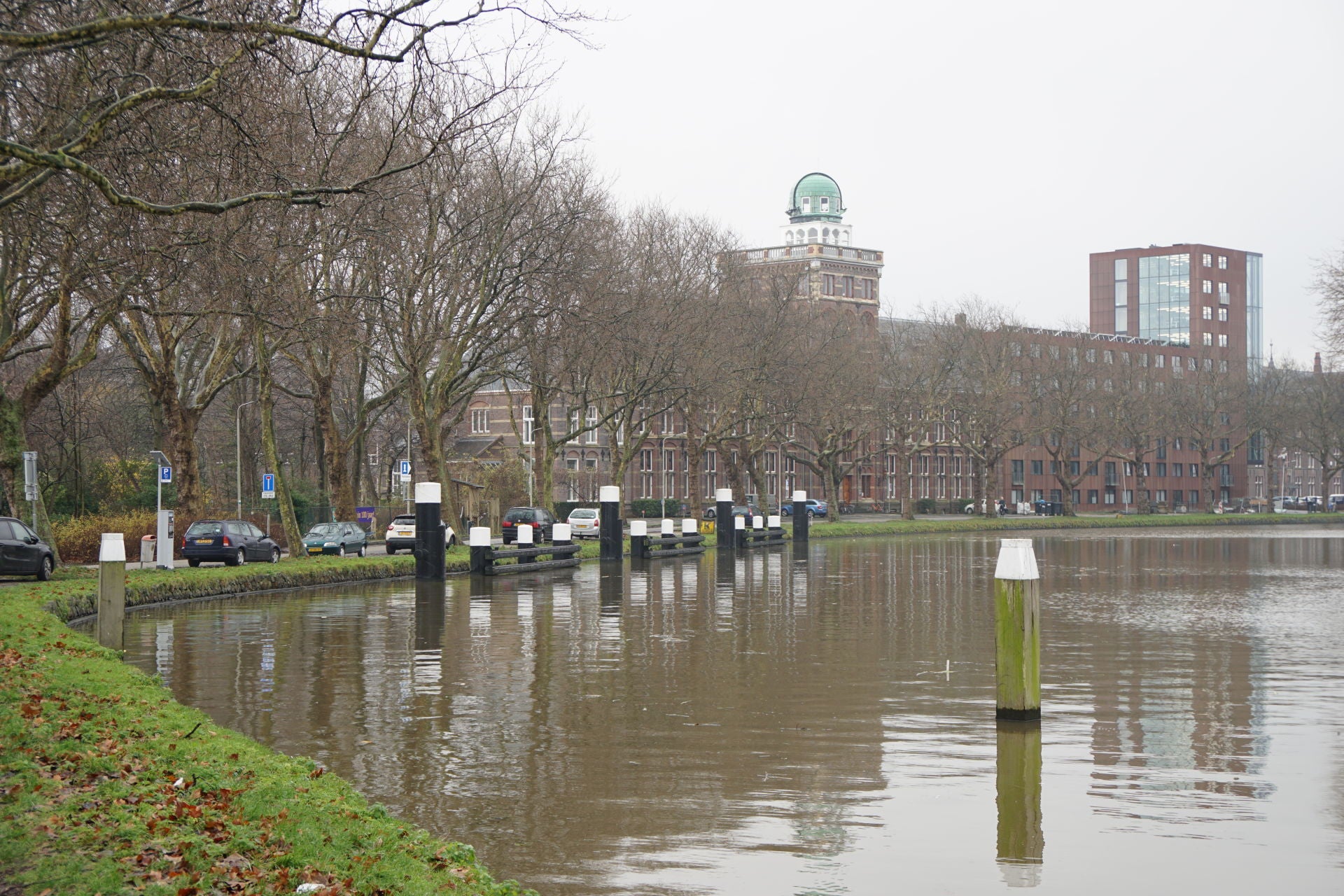 Schuin tegenover het statonsgebouw aan de overzijde van het water staan twee villa's die bij de universiteit hoorden.