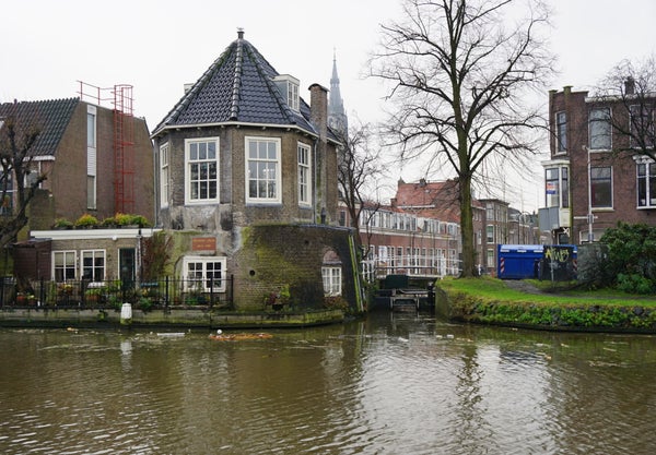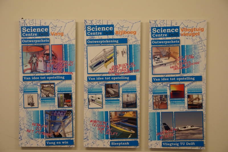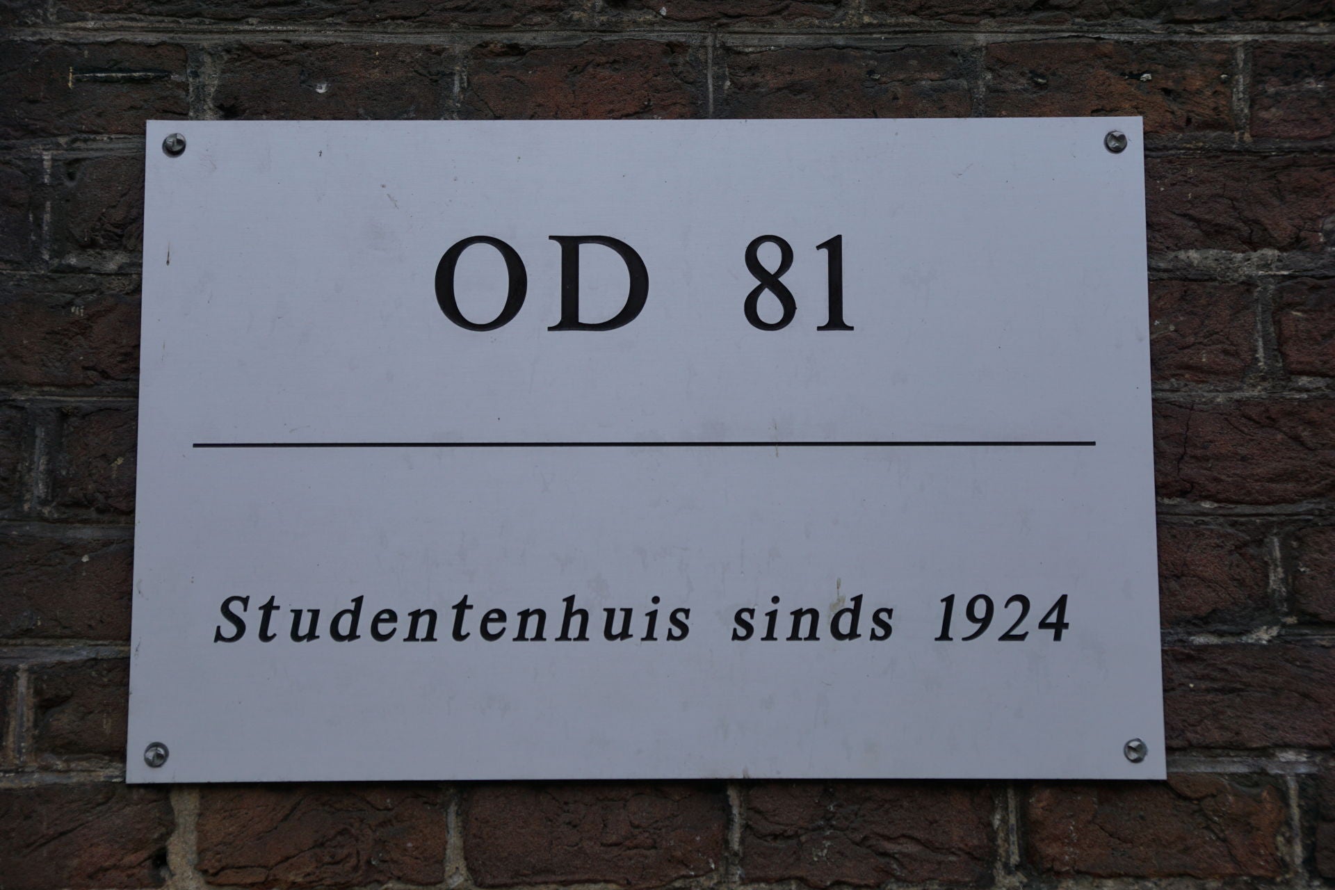 Langs de Oude Delft kun je uit de bordjes aan de gevels opmaken of er studenten wonen en of er vroeger instellingen van de universiteit zaten.
