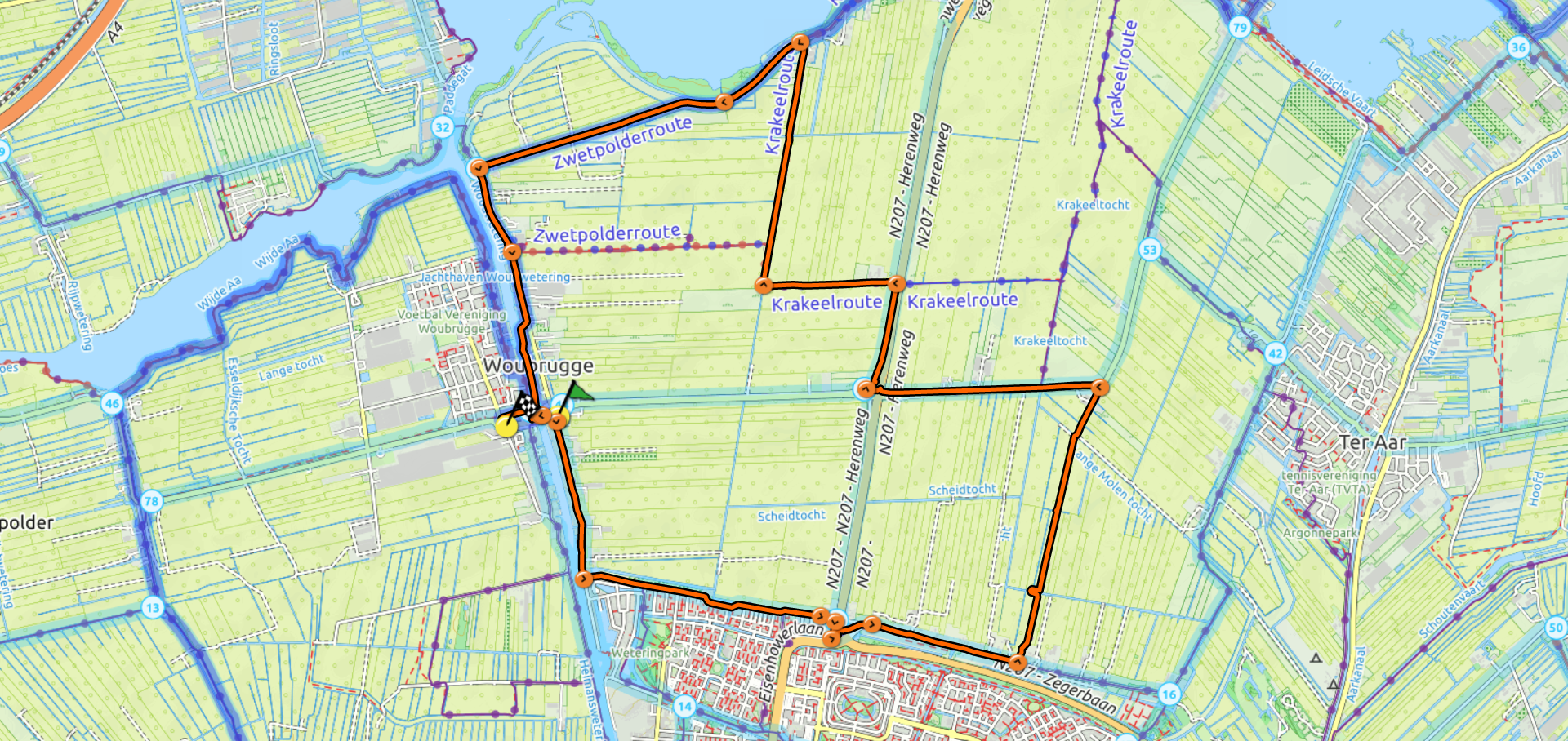 Startpunt: Bushalte Kruisweg/Brug Woubrugge