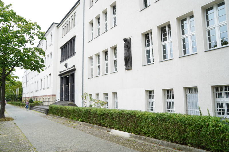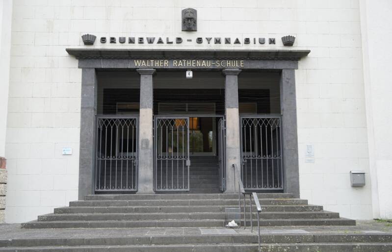 Na zo'n 700 meter komen we bij het Grunewald Gymnasium. Hier ging Dietrich, samen met zijn broer Klaus en zus Christel van 1919 tot 1923 naar school. De naam van de school is veranderd in Walter-Rathenau-Schule. Deze minister van Buitenlandse Zaken werd op 24 juni 1922 door twee extreemrechtse officieren doodgeschoten.