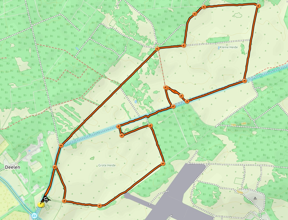 Parkeren: Parkeerplaats Deelen, Delenseweg 20 6877 AE Deelen (tegenover Museum Vliegbasis Deelen). Startpunt: Parkeerplaats Deelen. Afstand: 10 km